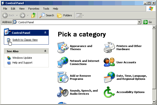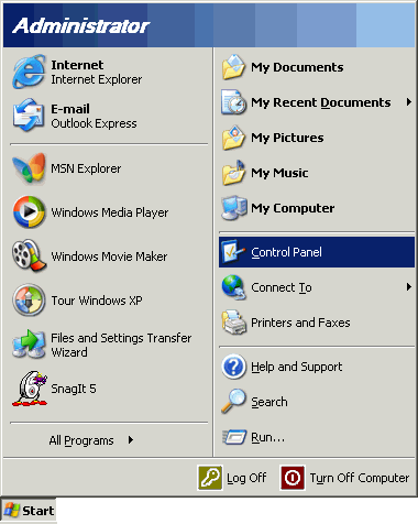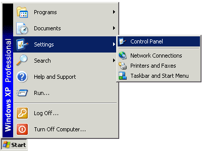Note: If you are running Windows XP in classic mode, your will need to select the Start menu, select Settings, then choose Control Panel