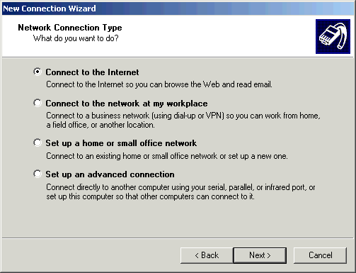 6. Select Connect to the Internet.