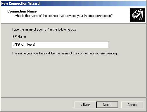 12. In the ISP Name field, type a name to identify your connection (ie. JTAN LineX).