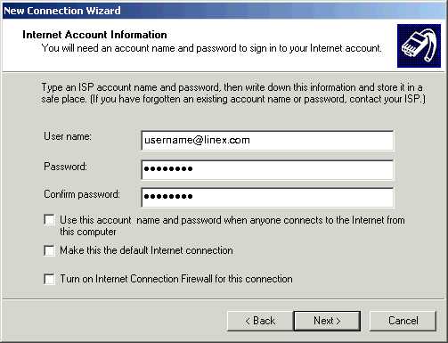 19. Uncheck the box next to Use this account name and password when anyone connects to the Internet from this computer.